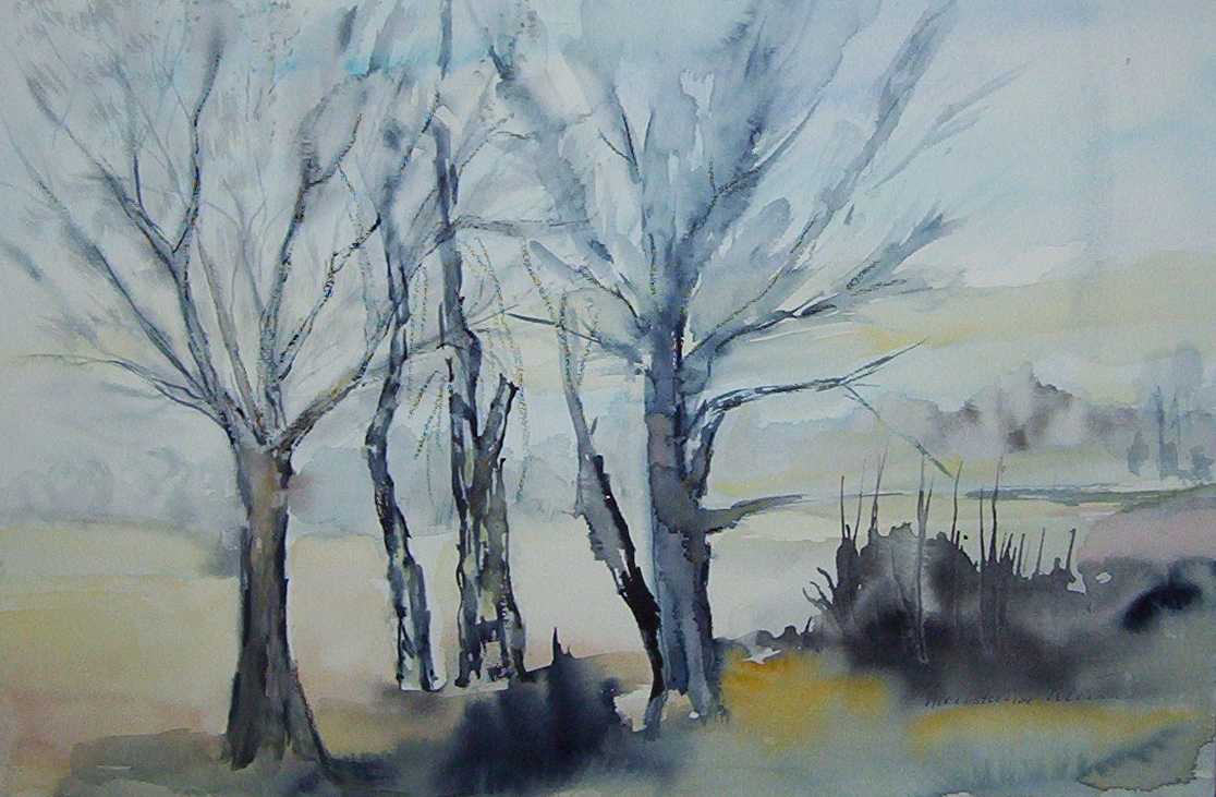 Bei Fischerhude Aquarell. Sign. Konstanze Klein 1992 rechts unten. B x H = 40 x 30 cm. Auf der Rückseite des Bildes von der Hand der Malerin: Fischerhude 1992 Konstanze Klein. Katalog WK Nr. 87