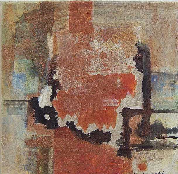 Großstadtimpression, Abstraktion. Acryl (?) auf Karton. BxH = 50 x 70 cm. Signatur Konstanze Klein links unten. Auf Karton gepinnt., ablösbar. Auf der Kartonrückseite von der Hand der Malerin: Großstadtimpression Wedding Aug/2005. Katalog WK Nr. 463