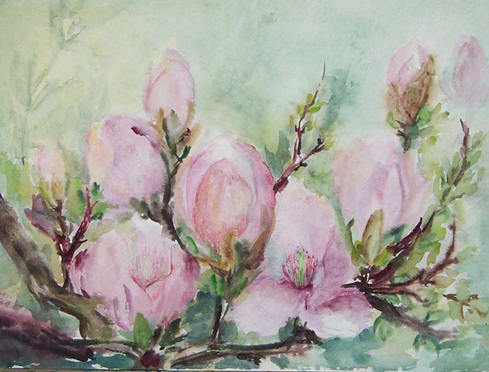 Blütenpracht, Aquarell. BxH = 29x39 cm. Signatur Konstanze Klein 8/89 rechts unten. Auf Bildrückseite von der Hand der Malerin: Konstanze Klein 8/89. Katalog WK Nr. 547
