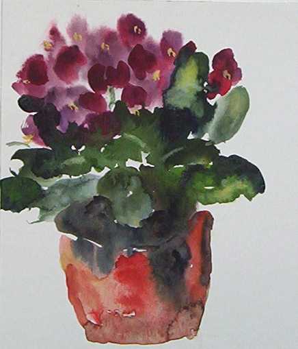 Geburtstagsblumen, Aquarell. BxH = 25 x 25 cm. Unten rechts von der Hand der Malerin: 30.7.01. Auf der Rückseite: Persönliche Widmung. Katalog WK Nr. 556
