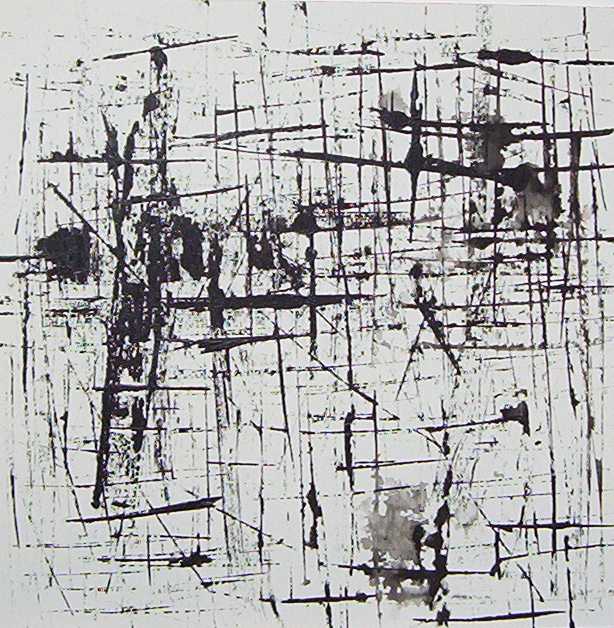 Zweige und Geäst. Zur Technik s. unten. Nicht signiert. B x H = 30 x 38 cm. Auf Karton gepinnt, läßt sich ablösen. Auf der Kartonrückseite von der Hand der Malerin: Ovalit, darein schwarze Farbe Acryl, danach rauskratzen (mit Ästen z.B.). -- Anm. WK: Ovalit ist ein Tapetenkleister. Nachlaßstempel auf Kartonrückseite. Katalog WK Nr. 127 .